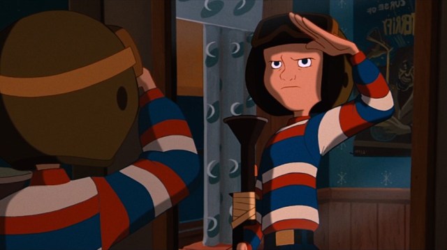 The film is also interesting in its eclectic animation style. As a cell animation film, it is clearly reminiscent of those classic animation films of Don Bluth and Hayao Miyazaki for its painstaking efforts on rich backgrounds and details, but Bird and his animators also used computer graphic animation for drawing the robot in the film. Looking as alien as required but being seamlessly incorporated into cell animation, the robot in the film never feels like merely being tacked on the screen, and that is one of the main reasons why the climactic action sequence later in the story powerfully works amidst lots of actions.