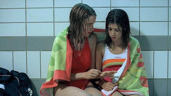 When we are introduced to Marie (Paulie Acquart) at the beginning of the film, this teenage tomboy girl is watching a local school swimming competition, in which her close friend Anne (Louise Blachère) eagerly participates even though many other girls apparently look younger or prettier in comparison. As a matter of fact, we do not see how much Anne tries in the swimming pool, but she is happy and excited anyway as being about to demonstrate her swimming skill in front of many others including Marie.