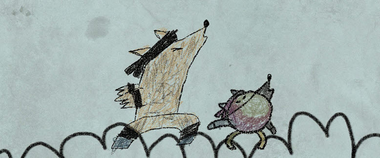 Lucía also promises to them that she will someday take them to the Disney park, so Max and Leo begin to learn a bit of English as required, but then they quickly get bored after memorizing a certain broken sentence which may be useful if they ever go to the Disney park. As their mother is more frequently absent or tired due to her increasing worktime, they come to throw themselves into their boundless imagination, and, as imagining themselves as two young brave ninja wolves fighting against the world, they draw some crude drawings, which become the basis of the occasional animation scenes in the film.