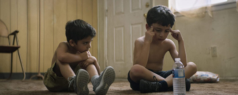 At the beginning, the movie calmly observes the long journey of Lucía (Martha Reyes Arias) and her two young sons across the Mexico-US border. Unlike many other illegal Latino immigrants, they easily cross the border as ‘tourists’ and then arrive in Albuquerque, New Mexico, but their harsh reality soon becomes quite evident to us. Because she is not a legitimate emigrant, Lucía has no choice but to do several menial jobs every day for earning enough money for her family, and her two sons Max (Maximiliano Nájar Márquez) and Leo (Leonardo Nájar Márquez) accordingly are left alone during most of daytime in their current staying place, a small shabby apartment which demands some cleaning work right from their very first day.