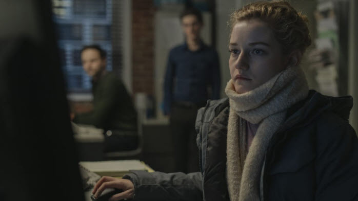 During the opening part, the movie introduces us to a young woman named Jane (Julia Garner), who has worked as a junior assistant at some prominent film production company located in the downtown area of New York City. When she leaves her current residence early in the morning, a car is already ready to take her to her workplace, and we soon see her doing a number of things in advance before other employees come.