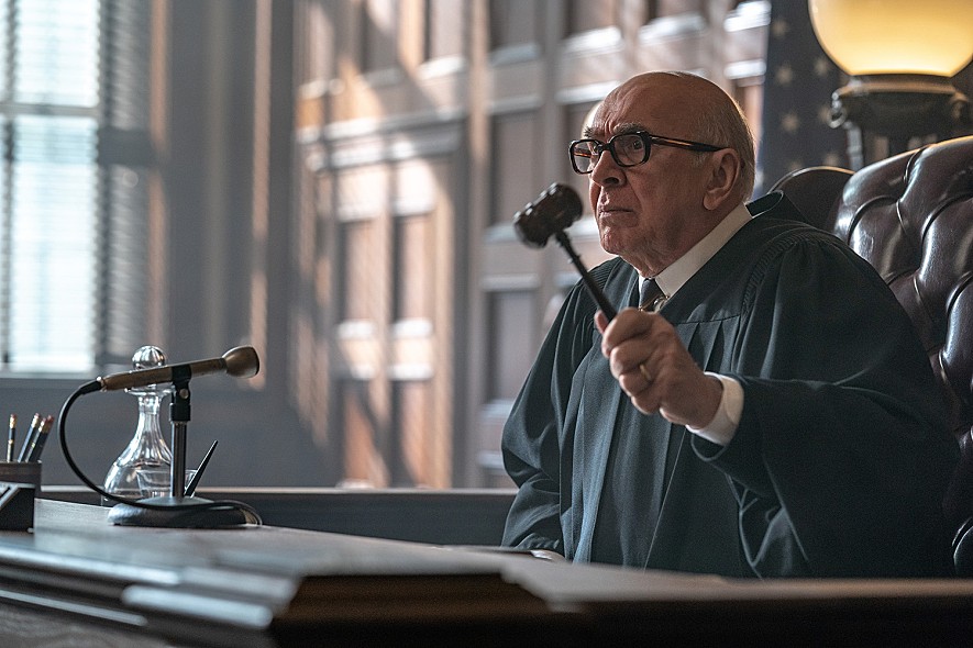 Not so surprisingly, Kunstler soon faces a series of small and big obstacles thanks to not only Schultz but also Judge Julius Hoffman (Frank Langella), who does not hide his personal contempt toward the defendants at all right from the first day of the trial. Looking stern and regal all the time, Judge Hoffman frequently blocks Kunstler’s no-nonsense tactics while also deliberately helping Schultz in more than one way, and there is a little amusing moment when he makes clear to the jury that he is not related to one of the defendants despite their same surname.