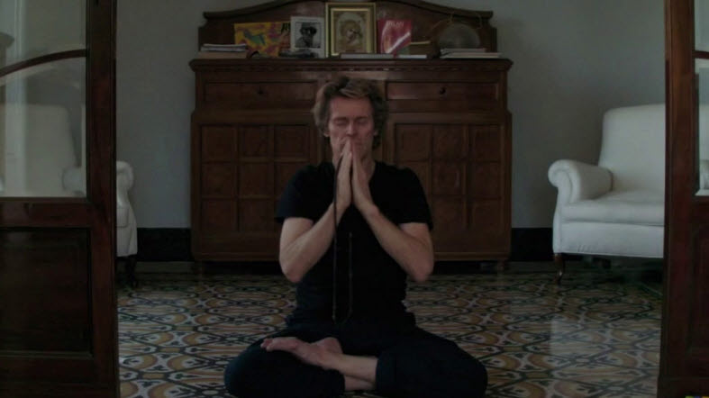 Willem Dafoe, who previously collaborated with Ferrara in several other films including “Pasolini” (2014) and “Siberia” (2020), plays Tommaso, a middle-aged American filmmaker currently residing in Rome, Italy along with his young Russian wife and their little daughter. At the beginning, we see him trying to learn Italian more from his private Italian teacher, and the mood becomes a bit more cheerful when he gives a little celebration of his teacher’s birthday.