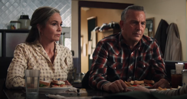 The first act of the movie is set in a rural area of Montana in the 1960s. We are introduced to George and Margaret Blackledge (Kevin Costner and Daine Lane), and everything feels fine and well for this gentle middle-aged couple and several people they have deeply cared about. Their only son married not so long ago, and Margaret is willing to help her daughter-in-law Lorna (Kayli Carter) raising her little grandson in their cozy ranch house while George often works with his son outside.