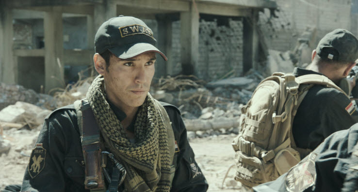 We assume that Kawa will function as our surrogate character along the story, and Jasem and his SWAT team members including Waleed (Is’Haq Elias) are willing to teach their new team members a bit, but they never specify to him on their latest mission at all. Along with Kawa, we gradually come to gather that Jasem and his SWAT team have been trying to reach to a certain spot of the city which has been still occupied by ISIS, but the purpose of Jasem and his SWAT team members’ latest mission remains frustratingly vague and elusive, and it is no wonder that Kawa come to lose some of his patience later in the story.