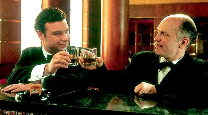 Although it must be pointed out that Logan’s screenplay frequently takes artistic liberties with its real-life story (For example, Welles was actually never invited to Hearst’s manor, and it was in fact Mankiewicz who conceived the story idea of “Citizen Kane” first), the story and characters in the film are vividly presented under Ross’ competent direction at least, and his main cast members are uniformly excellent on the whole. While he does not resemble Welles that much, Liev Schreiber did a good job of channeling Welles’ larger-than-life persona instead of resorting to mere imitation, and he is also supported well by a bunch of vividly colorful performers. Often looking as weary and sardonic as required, John Malkovich complements Schreiber’s spirited acting well on the screen, and their dynamic interactions on the screen establish the solid ground for a fictional moment of reconciliation between Welles and Mankiewicz after their serious clash over that controversial authorship of “Citizen Kane”. While Roy Scheider is ever-patient as a guy who must constantly balance himself between his business and Welles’ artistic ambition, James Cromwell and Melanie Griffith ably convey to us the human sides of Hearst and Davies’ flawed but ultimately enduring relationship, and Brenda Blethyn, Fiona Shaw, Liam Cunningham, and David Suchet are also effective in their small supporting parts.