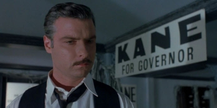 At the beginning of “RKO 281”, a black and white newsreel scene, which is evidently influenced by the “News on the March” sequence in “Citizen Kane”, gives us a succinct summary on the meteoric rise of Welles during the 1930s. While recognized as a new boy wonder of Broadway thanks to several critical successes achieved by him and his famous theater company, Welles went further as doing a number of notable radio shows, and then he reached to the top thanks to his infamous radio adaptation of H.G. Wells’ “The War of the Worlds” in October 1938. After boldly conquering both theater and radio in New York City, he was certainly willing to move onto another artistic field to challenge him, and that was why he subsequently accepted an offer from the RKO Studios in Hollywood, which guaranteed to him the unprecedented total artistic control over the first movie to be directed by him.