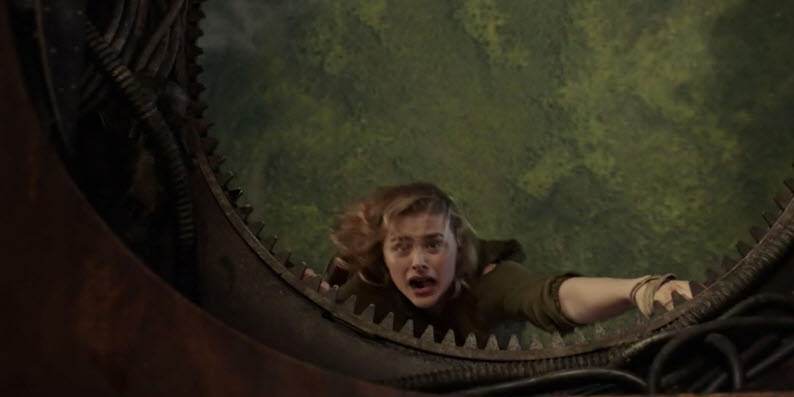 After the prologue scene which shows us a silly old-fashioned animation clip, the movie promptly throws us into the situation of its young heroine played by Chloë Grace Moretz. It is August 1943, and we see Moretz’s character hurriedly preparing for her departure from an air force base in Auckland, New Zealand, though the movie does not tell or show us the purpose of this departure of hers except her destination. Shortly after arriving at the air force base, she looks for a B-17 bomber supposed to take to her destination, and, what do you know, that B-17 bomber in question suddenly appears right in front of her.