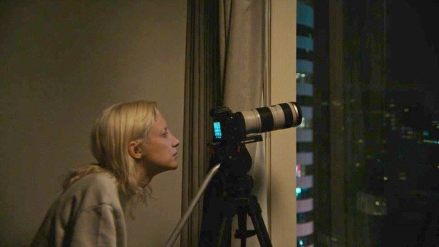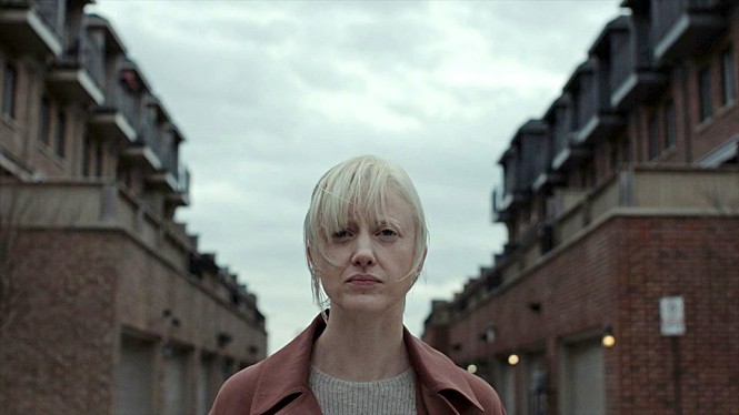 After the opening sequence which strikingly ends with a bloody act of killing, the movie gradually lets us gather its science fiction setting. Its heroine Tasya Vos (Andrea Riseborough) has worked as an assassin for some shadowy agency, and the agency has depended a lot on a certain highly advanced neurological technology for executing those assassination missions without leaving any possible trace. All she has to do is subjecting herself to a special equipment which will transfer her consciousness to a chosen target which has already been implanted with a tiny transmitter, and then the target in question, who is totally under her mind control from that point, will carry out her assassination mission.