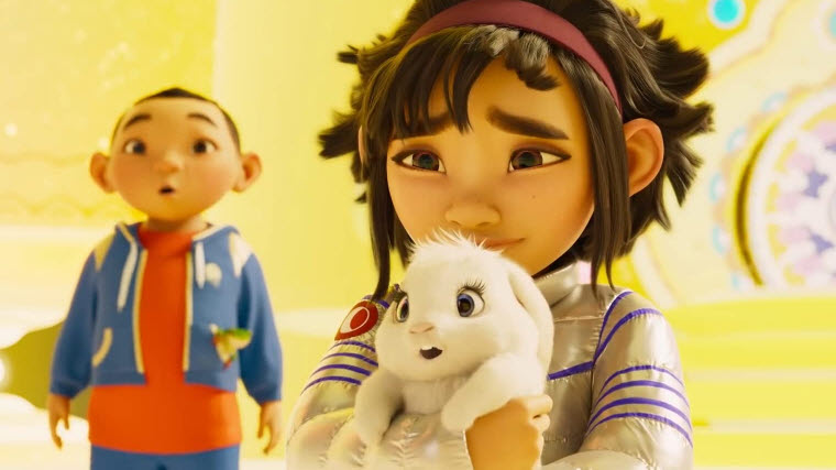 The story of the film mainly revolves around Fei Fei (voiced by Cathy Ang), a perky 13-year-old Chinese girl who still dearly holds herself to the memories of her dead mother and an old folk tale which her mother used to tell her. Long time ago, Chang’e (voiced by Phillipa Soo), the mythical goddess of the Moon, was fallen in love with some dashing human dude, but, alas, they were eventually separated due to his death, and that certainly devastated her a lot. According to the folk tale, Chang’e is still waiting for the return of her true love in her lunar kingdom even at present, and that certainly resonates a lot with Fei Fei, who still misses her mother every day even though she and her father have moved on as managing their little moon cake shop together during last several years.