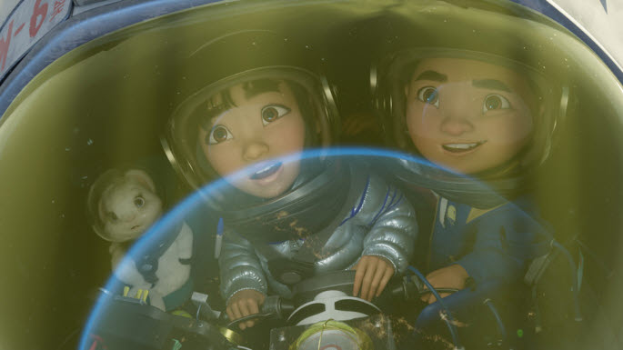 Now this sounds very preposterous to say the least, but the screenplay by late Audrey Wells, which was subsequently augmented with the additional materials from Alice Wu and Jennifer Yee McDevitt, takes some leaps of faith as expected from its modern fantasy setting. For going to the Moon, Fei Fei promptly embarks on building a rocket, and, believe or not, everything including a spacesuit and a helmet comes pretty quick and handy to her as she builds the rocket step by step without telling anyone about that. She also needs to find something powerful enough to catapult her rocket all the way to the Moon, and, what do you know, there is a maglev train rail which has just been installed outside her town.