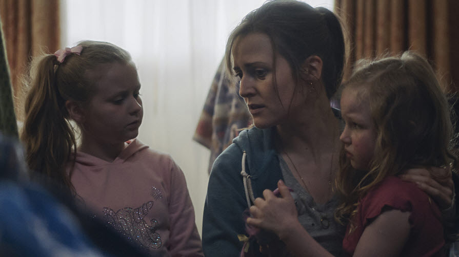Clare Dunne, an Irish actress who writes the screenplay along with Malcolm Campbell, plays the heroine of the film, and the movie begins with a sweet and playful moment between her character and her character’s two little daughters in their home, which is soon disrupted by the appearance of her violently abusive husband. He is quite furious to find that his wife has been saving some money which is apparently for leaving him along with their kids someday, and, once she has her daughters go outside, this bastard begins to beat and insult her without any hesitation.