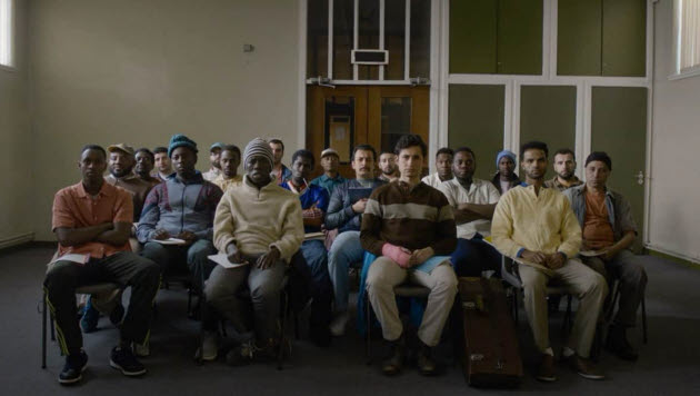 Omar has resided in a small house along with three other refugees: Farhad (Vikash Bhai), Wasef (Ola Orebiyi), and Abedi (Kwabena Ansah). Without much to do except waiting outside for any notification letter to be delivered, they usually spend time on watching a certain famous American TV sitcom series, and we later get a small amusing moment when two of them zealously discuss on the relationship development between the two lead characters of that American TV sitcom series.