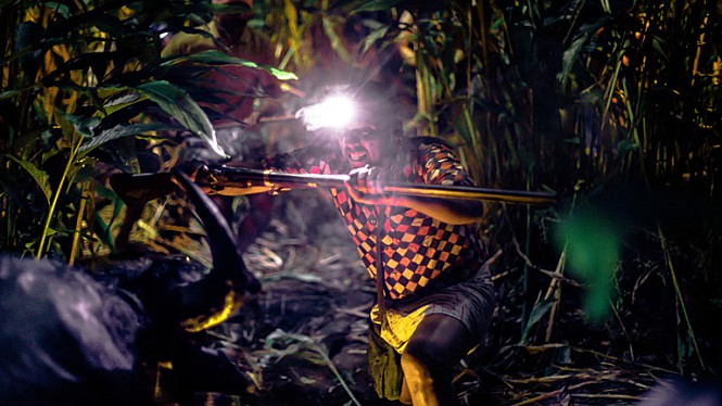 Anyway, it becomes quite clear to the villagers that they need some more extra help, but the local police officers are not particularly willing to use their firearms just because they are not allowed to do that without any official permission. When a local poacher named Kuttachan (Sabumon Abdusamad) enters the picture later, the villagers are certainly delighted and excited, and this dude, who looks as confident as Robert Shaw’s character in “Jaws”, announces to them that he will track down and then kill the water buffalo within a short time.
