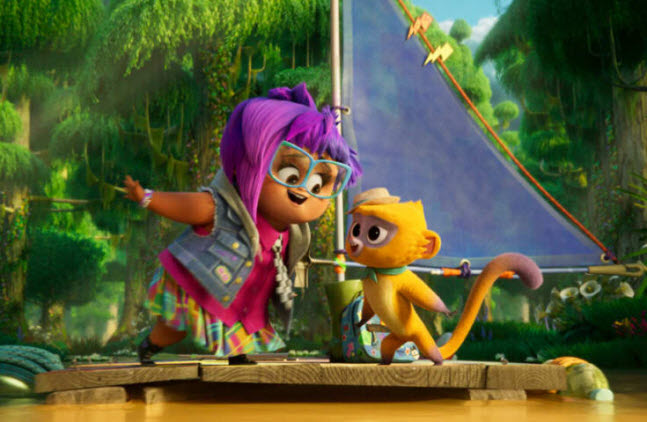 This interlude part feels rather redundant in my humble opinion, but it is not entirely without amusement. You may be amused a bit by the scene involved with a pair of roseate spoonbills voiced by Brian Tyree Henry and Nicole Byer, and the mood becomes a bit tense when Vivo later encounters a giant anaconda voiced by Michael Rooker, who has a little small fun with his character’s vicious nature despite being under-utilized even compared to his brief recent appearance at the beginning of “The Suicide Squad” (2021).