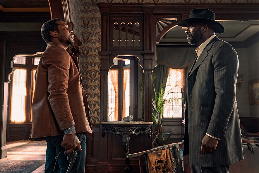 After flatly reminding us that its story is loosely inspired by real-life black outlaws in the Wild West during the 19th century, the movie introduces us to Nat Love (Jonathan Majors), a young notorious black outlaw who has usually preyed on other outlaws along with his own black gangs. Love and his gangs recently attack upon a certain other black gang group, and they happily snatch that gang group’s latest spoil after killing most of that gang group members, but it seems that they made a big mistake in this time. That spoil in question was supposed to be delivered by an infamous gang group once led by a ruthless outlaw named Rufus Buck (Idris Elba), and Buck, who has been incarcerated in a prison for years, will definitely need that spoil once he is freed through some shady arrangement between the US government and his trusted gang members including Trudy Smith (Regina King) and Cherokee Bill (Lakeith Stanfield).