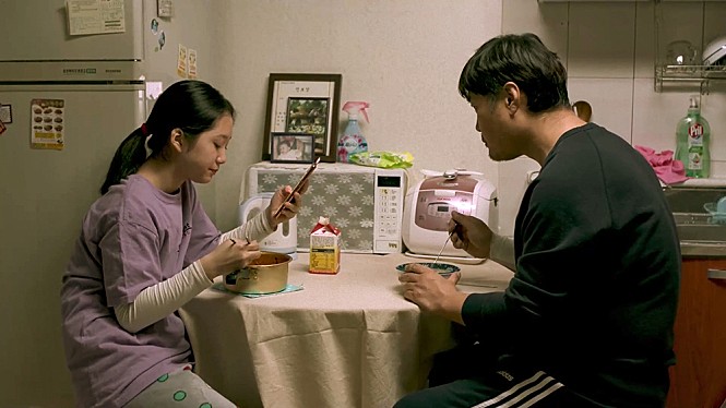 However, there is still something Jae-bok can do for both of his two daughters. In case of Hyeon-hee (Kim Jung-yeon), she is about to go to a college after recently graduating from her high school, and she needs some extra cash right now for her upcoming enrollment. In case of her younger sister Hyeon-bin (Lee Seung-joo), it turns out later that she wants to have some fancy winter clothes, and Jae-bok is certainly willing to buy that for her – if he can find any temporary job which pays him enough for that as well as that necessary extra cash for Hyeon-hee.