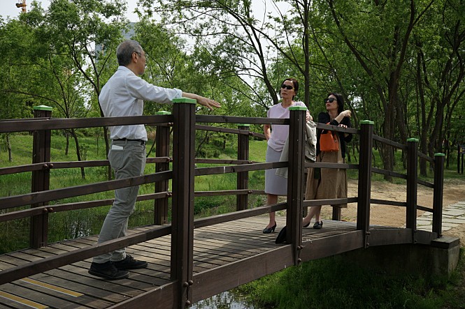 During the first act of the film, which is set in one of those satellite cities around Seoul, we are introduced to a middle-aged lady named Sang-ok (Lee Hye-young), who recently came back to South Korea after many years she spent in US. She is currently staying in a high-rise apartment belonging to her younger sister Jeong-ok (Jo Yoon-hee), and we see her and Jeong-ok later spending some time outside, but, despite their cordial conversation, we sense some emotional reservation from Sang-ok. When her younger sister suggests that Sang-ok should settle back in South Korea and then buy an apartment to live for the rest of her life, Sang-ok seems to be interested in that suggestion to some degree, but she does not agree to that suggestion nonetheless, and that leaves some awkwardness between her and Jeong-ok.