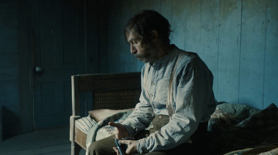 Tim Blake Nelson, who has always been one of the most dependable character actors working in Hollywood during last two decades since he drew our attention via his colorful supporting turn in the Coen brothers’ “O Brother, Where Art Thou?” (2000), plays Henry McCarthy, a shabby widower farmer who has run a small farm in the middle of some remote area of Oklahoma in 1906. Since his dear wife died around 10 years ago, he has lived there alone with his young son Wyatt (Gavin Lewis), and their only neighbor is his brother-in-law, who has also run his own farm not so far from Henry’s. Although he and his son are not exactly friendly to each other, it is evident to us that Henry cares a lot about his son, and he even does not let Wyatt handle a gun even though Wyatt is now old enough for that in the standard of the American Old West.