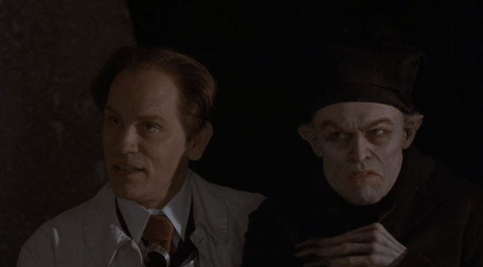 Inspired by the undeniably vivid and striking appearance of Schreck in “Nosferatu”, E. Elias Merhige’s 2000 film “Shadow of the Vampire” attempts to develop one darkly amusing premise: what if Murnau actually hired a real vampire as his leading actor at that time? This surely sounds pretty preposterous to say the least, but the movie handles this utterly unbelievable premise as seriously as possible for working as a deadpan one-joke horror comedy, and the overall result is further enhanced by another memorable vampire performance which deserves to be compared with Schreck’s in the 1922 movie.