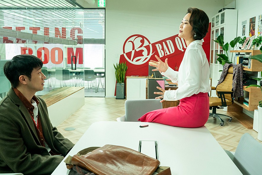 Anyway, the movie is supported fairly well by its two lead performers, who deserve better considering the good comic chemistry between them. Jeon Jong-seo, who has quickly advanced during last several years thanks to her good performance in “Burning” (2018) and “The Call” (2020), demonstrates another side of her undeniable talent here, and she is especially funny whenever her character freely and unapologetically follows her sexual need and desire. On the opposite, Son Sukku’s low-key acting complements his co-star’s spirited performance well during several key scenes between them, and several other cast members including Gong Min-jung and Kim Jae-hwa have each own little juicy moment around Jeon and Son.