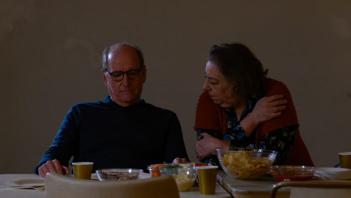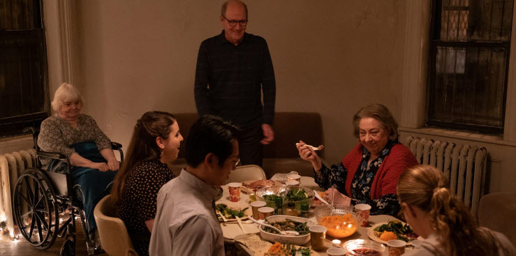 Anyway, Brigid’s parents and older sister come to the apartment for having the Thanksgiving dinner with her and Richard, and they also bring Brigid’s grandmother Momo (June Squibb). Having recently become quite fragile in addition to suffering Alzheimer’s disease which deteriorates her speaking ability a lot, Momo is mostly bound to her wheelchair, and there is not much interaction between her and others because she often seems to be lost in her fading mind.