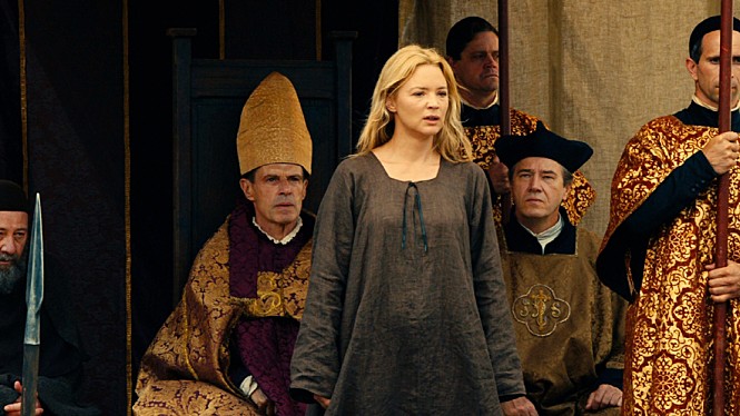 Of course, the situation inevitably becomes quite serious with the entrance of the character played by Lambert Wilson, who has a nasty little fun as a haughty dude quite willing to punish our two lesbian lovers by any means necessary. As a result, we are served with a torture scene which is thankfully presented with some admirable restraint, and then there inevitably comes a big dramatic moment of good old burning-at-the-stake.