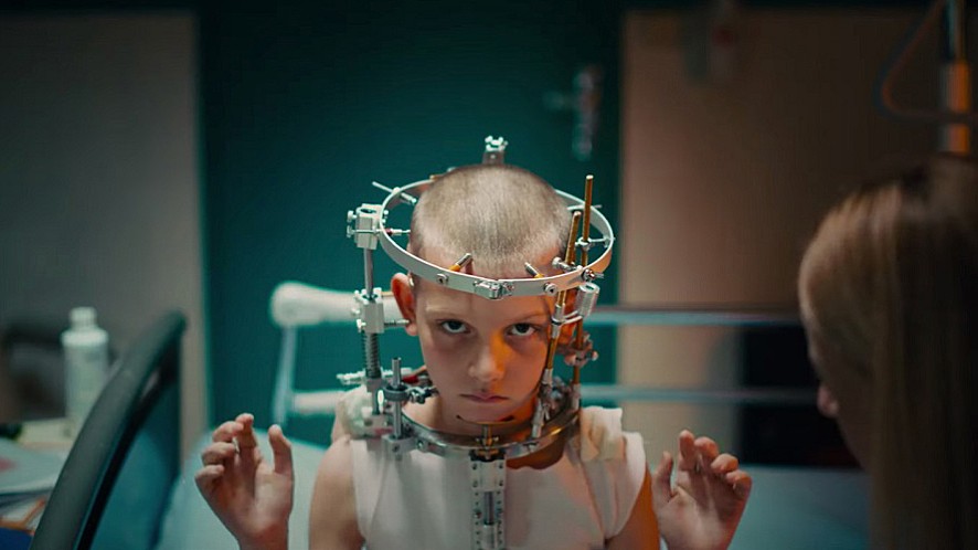 The movie opens with the scene showing a young girl deliberately annoying her father again and again while he is driving his car. When her father finally comes to lose all of his patience, an accident unfortunately happens, and the young girl gets horribly injured on the right side of her head. After her following surgery which is depicted with graphic details to make you cringe, she looks like being on the way to recovery, but she is now with a permanent big scar on the right side of her head, and, as reflected by a brief scene between her and her parents, it seems that the accident did not damage her head only.