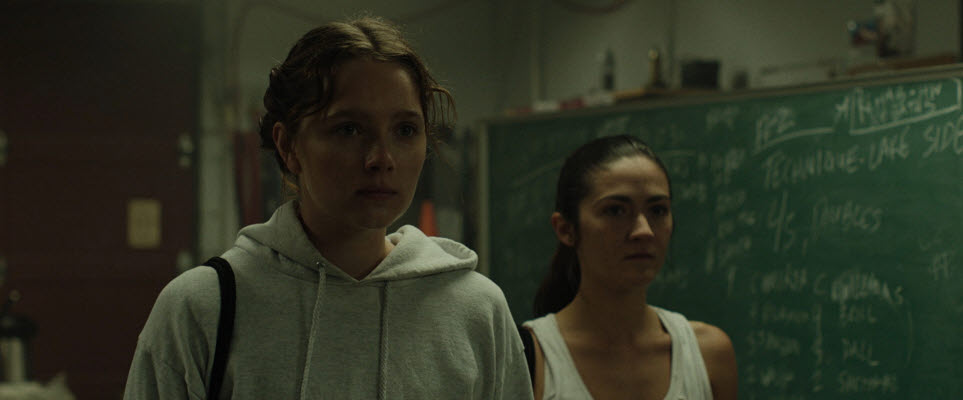 However, Alex still cannot possibly stop herself from being driven by her growing competitiveness, and director/writer/co-editor Lauren Hadaway, who made her feature film debut here, and her crew members including cinematographer Tood Martin frequently did a commendable job of depicting Alex’s increasingly unstable state of mind with considerable verisimilitude and dramatic impact. While Martin’s camera effectively establishes constant cold and grey atmosphere on the screen, Hadaway and her co-editor Nathan Nugent vividly present Alex’s confusion and obsession via deliberately choppy editing, and the result is further accentuated by occasional sound distortion effects on the soundtrack.