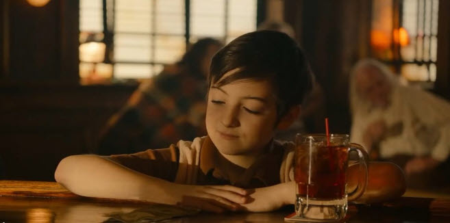 Young J.R. often comes to Charlie’s bar, and, though he is surely not allowed to drink any booze, he enjoys being around his dear uncle, who willingly encourages his nephew’s interest in reading and writing. After all, the name of his bar came from the author of several books placed in the bar, and he turns out to be quite more perceptive and intelligent than he looks on the surface. At one point, he makes a sincere but sharp comment on his nephew’s little family newspaper, and that certainly makes young J.R. have more confidence about his writing talent.
