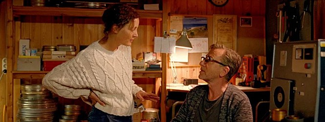 While Hansen-Løve’s screenplay leisurely moves from one episodic moment to another, the movie gradually immerses us into the quiet and soothing mood of the island, and it occasionally amuses us as showing various spots associated with Bergman’s life and career. If you are quite familiar with his notable works including “Persona” (1966) and “Scenes from a Marriage” (1973), you may easily recognize some of them with a bit of amusement, and I will not deny that I was tickled a little as observing Tony and Chris in Bergman’s private screening room for watching “Cries and Whisperers” (1972), which is certainly not as feel-good as Chris hopes.