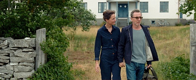 In the beginning, the movie opens with a filmmaker couple arriving in Fårö for some respite and, of course, creative inspiration. While Tony (Tim Roth) is looking forward to having a good time there, Chris (Vicky Krieps) is not so sure about that from the start, and we later observe how different they are in case of their respective opinions on Bergman’s life and career. While Tony is your average hardcore Bergman fan, Chris is not exactly enthusiastic about Bergman’s works, and she also makes a critical point on Bergman’s messy personal life when she and Tony have a little conversation with others at one point.