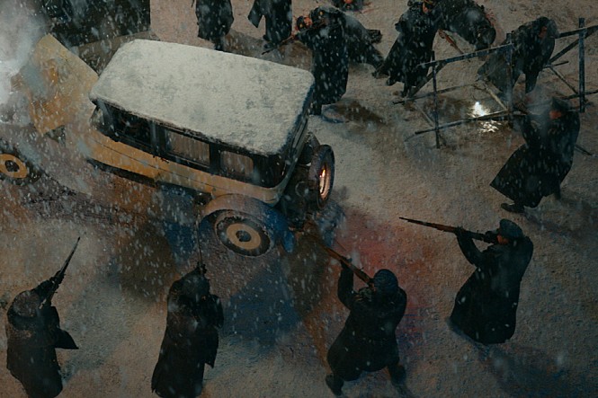 As the cat-and-mouse game between the four agents and their opponent is continued, the movie steadily accumulates more tension and mood on the screen in addition to doling out several plot turns I will not reveal here. The screen is frequently packed with nice period details to be appreciated (I was particularly amused by some cosmopolitan elements of Harbin during the 1930s, for example), and Zhang and his cinematographer Zhao Xiaoding, who previous collaborated with Zhang in “Coming Home” (2014) and “Shadow” (2018), did a commendable job of establishing a moody sense of melancholy and desperation in the snowy winter background of the film. Not so surprisingly, the overall result often takes us back to that indelible grey ambiance of Jean-Pierre Melville’s great film “Army of Shadows” (1969), and we get more emotionally absorbed in the despairingly uncertain circumstance surrounding the main characters of the film, though we also naturally observe their story from the distance due to knowing too well what would eventually happen in 1945.