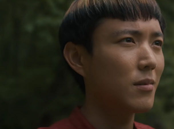 While searching for that young woman, Jake also comes to reflect more on how his family lived with Yang, and Kogonada’s adapted screenplay begins to flow freely between their personal memories of Yang and Yang’s recorded moments. Using two different screen ratios, the movie initially draws the line between Yang’s recorded moments and flashback scenes, but both of them come to resonate with each other along the story, and we later get a powerful visual moment when Jake delves further into Yang’s memory bank for getting to know and understand Yang more.