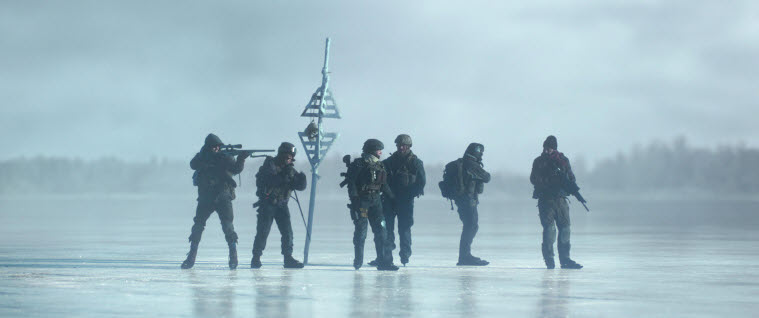 It goes without saying that Edh and other soldiers, led by Forsberg (Aliette Opheim), will have to depend a lot on each other for accomplishing the mission and then surviving in the end. While carefully sliding across the frozen sea, they must be constantly watchful of enemy attack, and, above all, they must be wary of any danger hidden in the frozen ice floor, which can be broken under their feet at any chance.