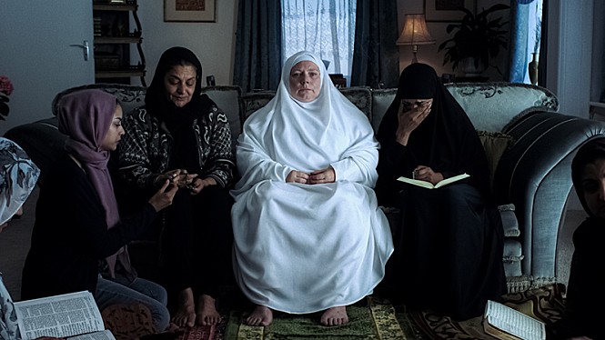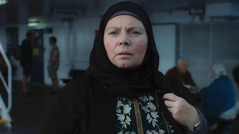 The movie opens with an unexpected happening which turns upside down the daily life of a middled-aged British Muslim woman named Mary Hussain (Joanna Scanlan). For many years, she has been married to a Pakistani guy who has worked as one the crew members of a ship routinely going back and forth between UK and France, and, as clearly shown from her traditional attire, she even converted to Islam for her husband around the time of their marriage. It looks like she and her husband have had a fairly good married life despite having no child between them, and we see her making some tea in the kitchen not long after they return to their home at one night, but then, alas, she belatedly discovers that her husband suddenly died while waiting for the tea in the living room.
