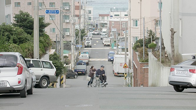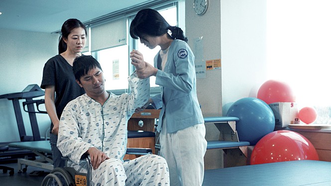 The opening part of the movie quickly establishes its young hero’s very unfortunate circumstance. After being hit by a car on the road, Jae-gi (Jo Min-sang) becomes severely disabled due to the injury resulted from that accident, but he does not get much support even when he is recovering at a local hospital. Although he gets some help from his older sister Eun-joo (Hyun Tae-kyung), he often feels frustrated because he has to depend a lot on wheelchair now, and then he is notified that he is graded as a person of mild disability despite his severely disabled body. As a consequence, he is not allowed to get a number of necessary welfare services which are only for persons of more sever disability according to the current welfare laws, and this is also going to jeopardize his subsequent job search because many companies hire persons of more sever disability first.