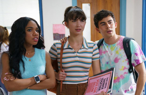 The screenplay by Kirsten King and Casey Rackham is often predictable and conventional to the core, but it is still engaging nonetheless as constantly providing humor and sincerity along its heroine’s bumpy emotional journey. While we often chuckle at several silly comic moments of hers, there is also enough gravitas under her aspiration and romantic yearning, and that is why the expected finale works well as drawing some cheers from us. I also enjoyed a subplot associated with Dillon and Stacey’s playful (and sexually charged) competition on the upcoming student president election, and this subplot also gets a nice payoff moment around the end of the story.