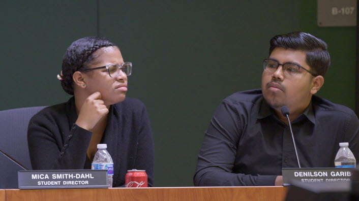 In case of Denilson Garibo, a student governing board representative who slowly becomes the unassuming center of the documentary thanks to his natural charisma and spirit, he was certainly passionate about this issue, and he and his fellow student representative Mica Smith-Dahl tried their best at the public school administration board meeting, but their opinions did not draw much attention from the adult board members. When the board eventually decided to let police officers inside the schools as before, Garibo and Smith-Dahl expressed their bitter disappointment and frustration, but, again, nobody in the board paid any particular attention to their thoughts and feelings.