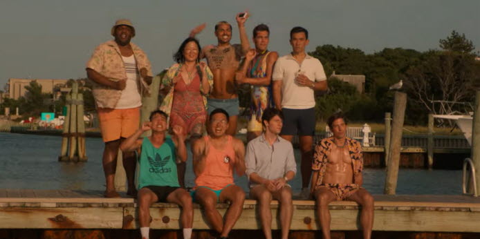 The main background of the movie is Fire Island, the famous gay village off the South Shore of Long Island. As another summer starts, a young Asian American gay man named Noah (Joel Kim Booster) is certainly looking forward to having lots of fun there along with his several close friends including Howie (Bowen Yang) during next several days, and we soon see them and many other gay people becoming quite excited as the ship carrying them eventually arrives at Fire Island.