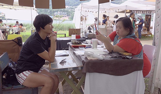 Meanwhile, as shown from the early part of the documentary, Eun-hye also applied for the workshop for disabled artists in Seoul. Fortunately for her, she got accepted into the workshop without much difficulty, and we subsequently see her cheerfully joining her fellow disabled artists. At one point, the camera shows her assigned to a little private place of her own for artistic activities, and she is certainly delighted about that.