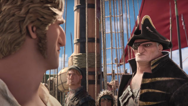 That famous monster-hunting ship and its crew led by Captain Crow (voiced by Jared Harris) has just arrived there in time, but the captain is not so pleased although he and his crew hunted enough during their latest voyage. Many years ago, he lost one of his eyes due to one particular sea monster which has evaded him and many other monster hunters for quite a long time, and, just like that obsessive captain hero of Herman Melville’s great American novel “Moby Dick”, he has been quite determined to catch that beast someday. He actually had one golden opportunity during the latest voyage, but, alas, he had to give it up for doing the right thing as advised by his right-hand guy Jacob Holland (voiced by Karl Urban), who has been his surrogate son since he was rescued when he was just a young small boy.