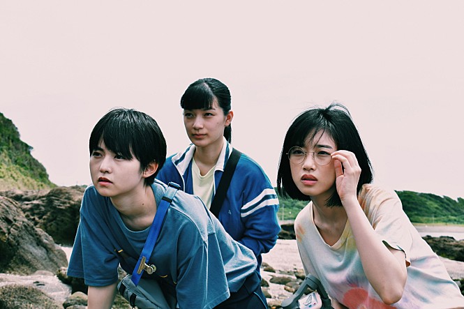 At least, Barefoot gets some comfort from her two close friends, who are nicknamed “Kickboard” (Yumi Kawai) and “Blue Hawaii” (Kirara Inori), respectively. Kickboard is more interested in astronomy while Blue Hawaii is more enthusiastic about swordsmanship, but both of them understand well how much their close friend wants to make a Samurai film, and there is a sweet little moment as they watch several old Samurai films together in their little private place.