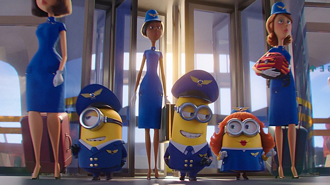 Around that narrative point, the film comes to focus more on those several Minions as they attempt to rescue Gru in addition to getting that ancient item back, and they surely give us a series of slapstick moments. At one point, as already shown to us via the trailer of the film, three of them dare to fly a commercial airplane despite having no experience or knowledge at all, and the following outcome is nearly disastrous to say the least.