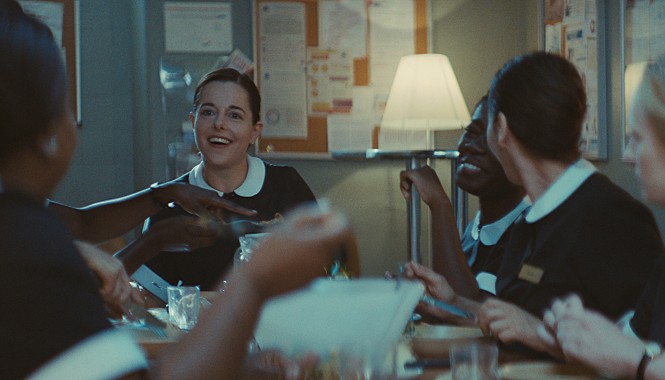 Above all, the movie is firmly held together by its unadorned but strong lead performance. Laure Calamy, who won the Best Actress award when the film was shown in the Orizzonti section of the Venice International Film Festival in last year (The movie also won the Best Director award, by the way), is superlative as effortlessly embodying her character’s weary desperation on the screen, and she is particularly stunning when her character must try anything for not losing her job. As the camera looks at her face closely, we can feel how desperate her character really is, and it is really devastating to see what eventually happens not long after that. In case of several other main cast members in the film, Anne Suarez, Geneviève Mnich, and Cyril Gueï are also fine in their respective supporting roles, and Mnich provides some human warmth as her character shows some sincere concern to Julie.