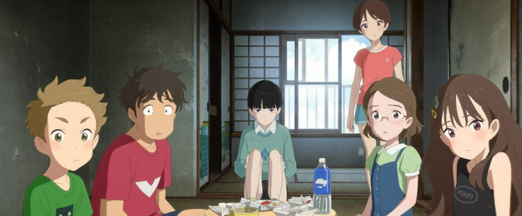 Incidentally, that apartment building in question is the one where Kōsuke’s grandfather resided, and Kōsuke and his friends soon come across Natsume, who turns out to know something about the apartment building. According to her, there is some boy living in the apartment building, but Kōsuke and his friends do not believe her much, and things become more complicated when popular schoolgirl, Reina (voiced by Inori Minase), and her best friend Juri (voiced by Kana Hanazawa) come after noticing Kōsuke and others on the rooftop of the apartment building.
