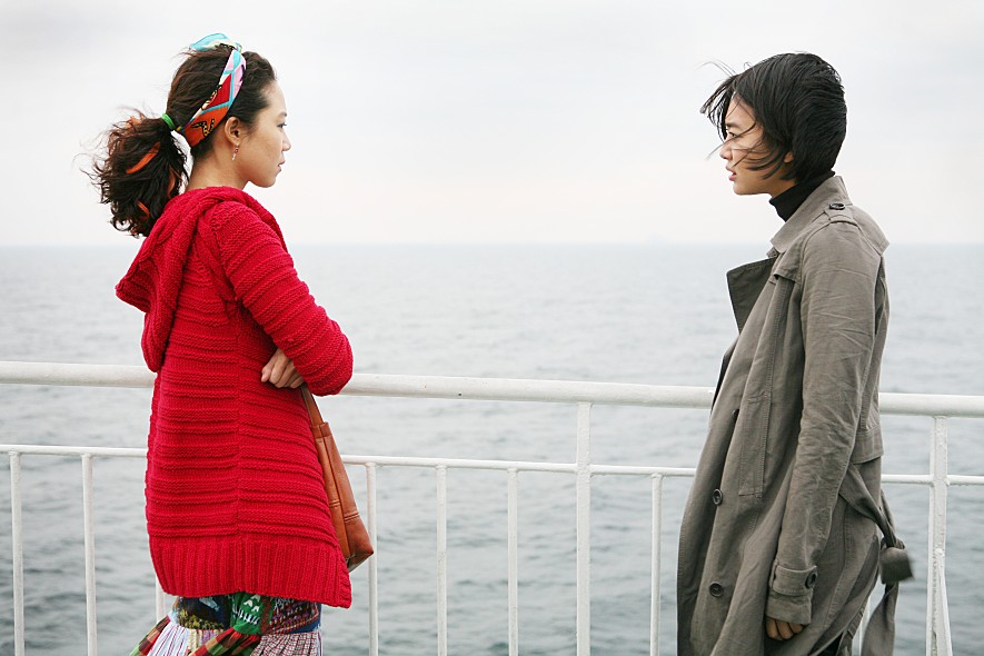 At the beginning, the movie introduces us to its two main characters: Myeong-joo (Gong Hyo-jin) and Myeong-eun (Shin Min-a). As shown from a series of flashback scenes in the film, there was a time when they grew up closely together as half-sisters in their hometown in Jeju Island, but they have been estranged from each other as respectively leading each own life, and the opening scene shows how much they are different from each other in many aspects. While Myeong-joo is a single mother who has raised her little daughter along with her mother and aunt, Myeong-eun has lived in Seoul since leaving their hometown some time ago, and we see how she busily works in some company while her half-sister is diligently working at a local fish market as usual.