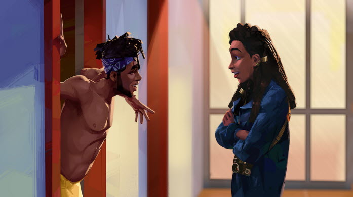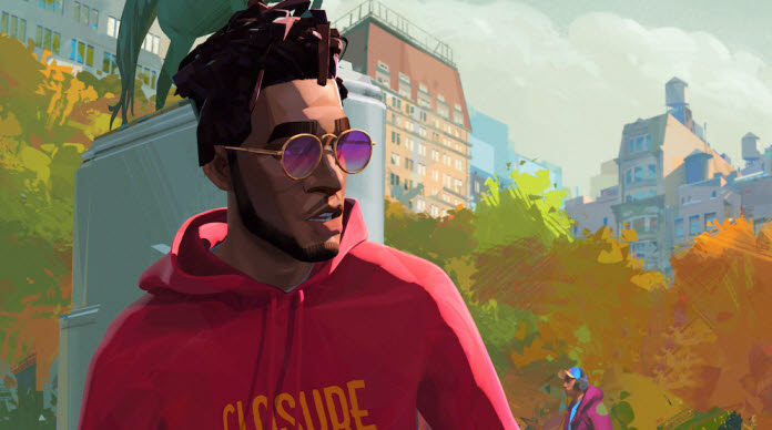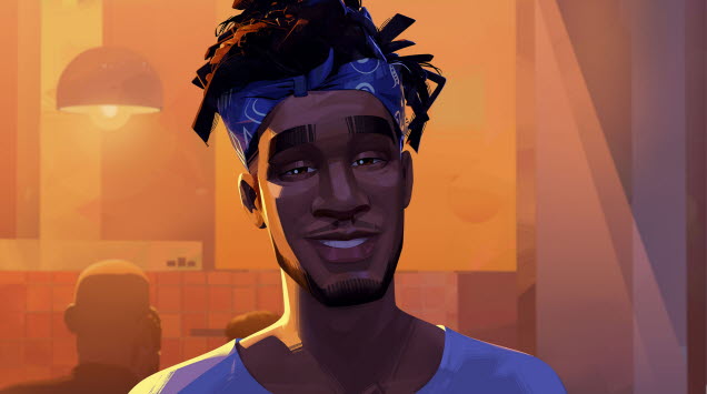 At the beginning, we are introduced to a young African American man named Jabari (voiced by Scott Mescudi). He is a promising artist who has just been hired by some big comic book company in New York City thanks to his bold and striking graffiti works on streets, but he is not so sure about how to develop his own original comic book series from the recurring figure in many of his graffiti works, and he instead finds himself aimlessly spending time along with his two close friends Ky (voiced by Tyrone Griffi Jr.) and Jimmy (voiced by Timothée Chalamet).