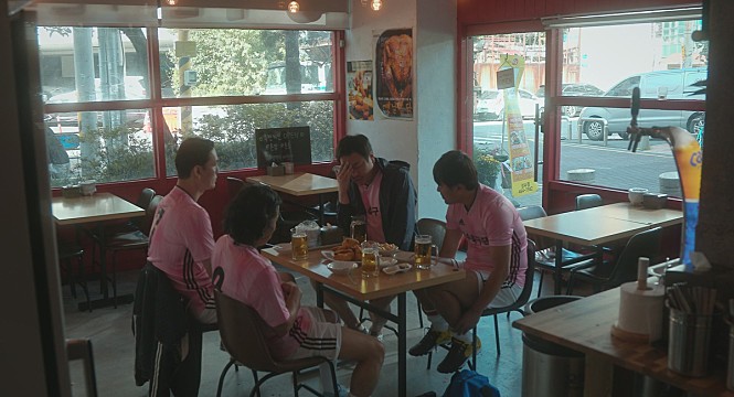 Of course, things gradually come to change as the team members keep trying day by day. At one point, they come to devise their own way of practicing a certain movement for their upcoming first game, and that is one of a few moments in the film which actually feel amusing to me. In case of their first game which is a part of a local amateur futsal tournament, this part does not work that well in contrast because it lacks comic momentum from the beginning, and the movie also fails to generate enough excitement as simply observing how crummy Joon-il’s team members are on the field. Okay, as a mini-version of soccer which only requires three team members, futsal may be inherently less exciting than soccer, but how this part is executed on the screen feels as clumsy as Joon-il’s bumbling team members.