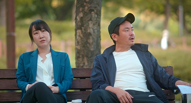 Above all, none of Joon-il’s team members are not particularly developed well in each case. In case of the aforementioned team member who has a manic depression problem, he is usually defined by his glaring introverted appearance, and the movie does not delve much into whatever he has been actually struggling with. In case of the two other team members, they are no more than broad caricature figures to be used for cheap laughs, so we come to observe them from the distance without much care even when they become a bit more active later in the story.